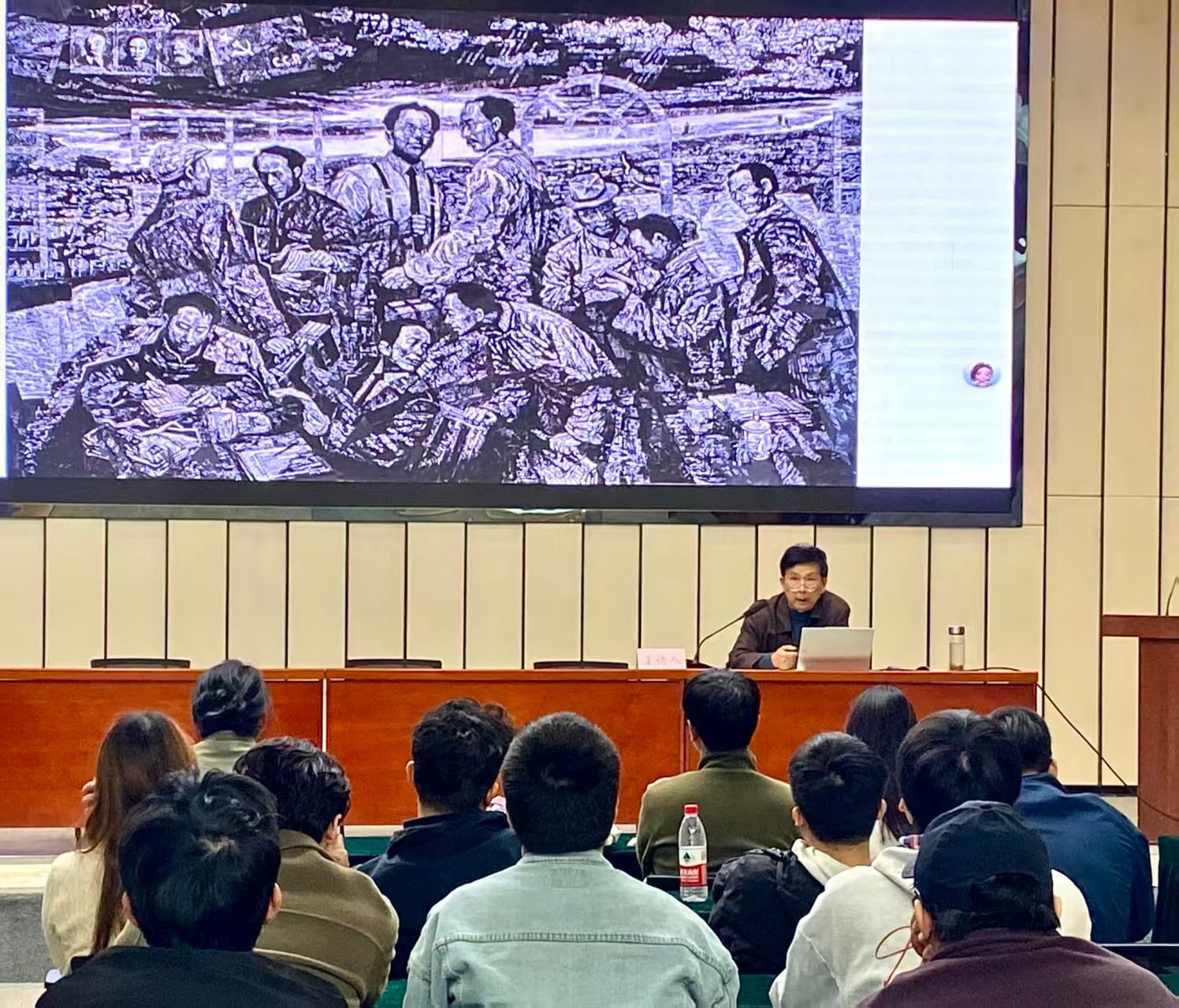 讲座中,王晓愚教授以其五十余年的创作经历为线索,深入阐述主题创作的艺术逻辑与精神内涵。他结合《世纪三峡》《青铜文明》《神女峰》等代表作,回顾了中国版画的时代嬗变与个体探索。他指出,主题创作是艺术家回应时代、观照社会的重要途径,应在叙事与形式、情感与理性之间寻求平衡,以艺术语言传递思想深度与文化信仰。他还鼓励青年学子“以展促学、以研促创”,通过产教研融合提升专业能力。
