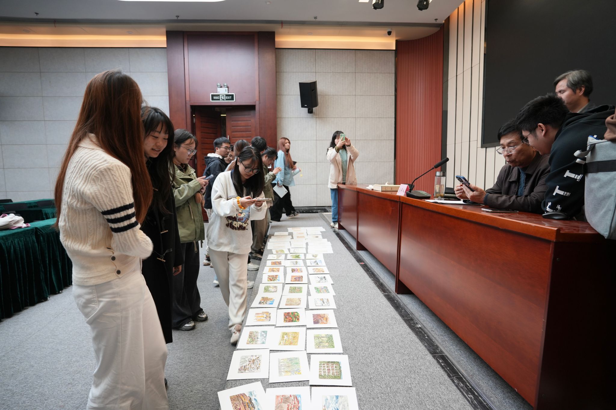 讲座现场气氛热烈,研究生围绕主题构思、材料语言及当代艺术创新等问题与王教授交流。活动结束后,学生观摩了王晓愚教授的纸本作品。