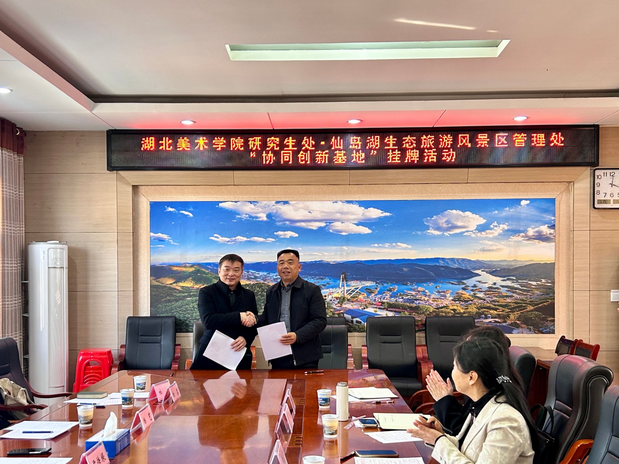 2026年1月15日上午,湖北美术学院与仙岛湖生态旅游风景区在仙岛湖举行研究生协同创新基地揭牌仪式,标志着双方校地合作进入实质性推进阶段。此次活动以“深化校地合作,赋能文旅发展”为主题,旨在通过艺术与旅游的深度融合,推动仙岛湖文旅产业高质量发展,助力打造具有地方特色的艺术旅游品牌。阳新县委常委、县委宣传部部长、县总工会主席陈淑芳,仙岛湖生态旅游风景区管理处党委书记、主任、王英镇党委书记孔祥鹏,县文旅局副局长王贤广,风景区管理处党委副书记周欢,与湖北美术学院研究生处处长尹传垠教授率领的专家团队共同出席。仪式由阳新县文旅局副局长王贤广主持。